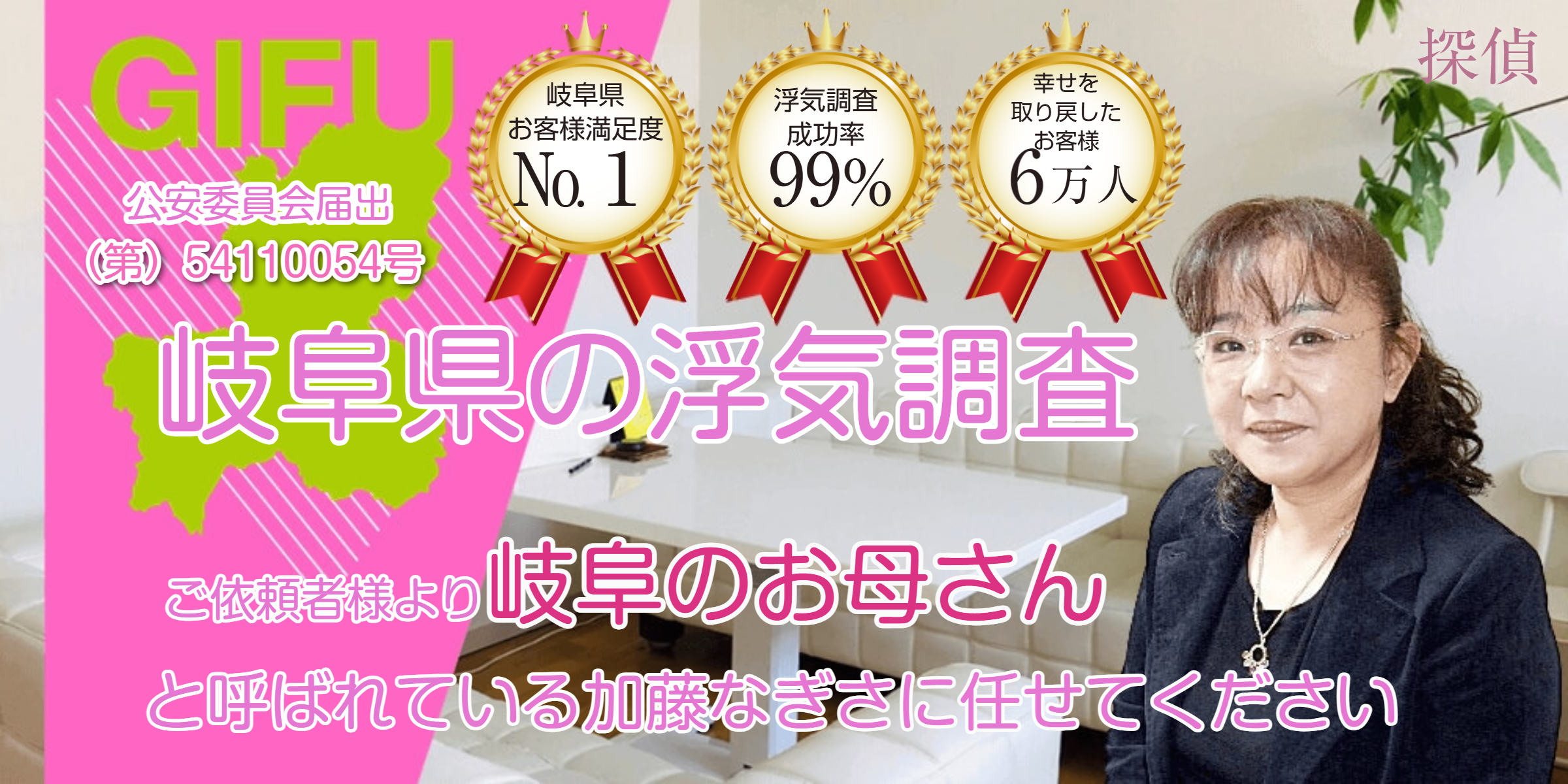 岐阜市・各務原市・大垣市・可児市など岐阜県全域対応の浮気調査専門の探偵事務所です。